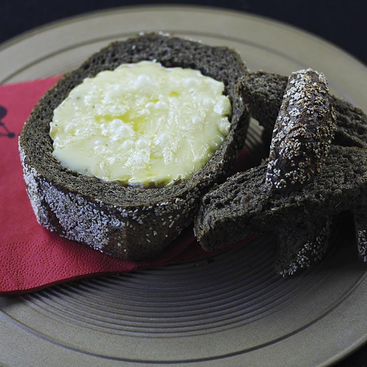 - In una ciotola, impastare il formaggio spalmabile con il sale e le spezie.