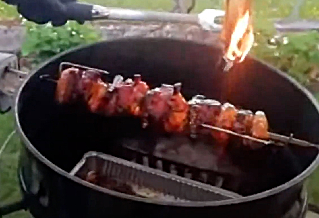 • Mettere lo spiedo nell’apposita sede del girarrosto e iniziare la cottura nel bbq a temperatura di 130°